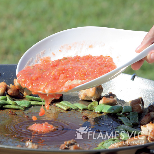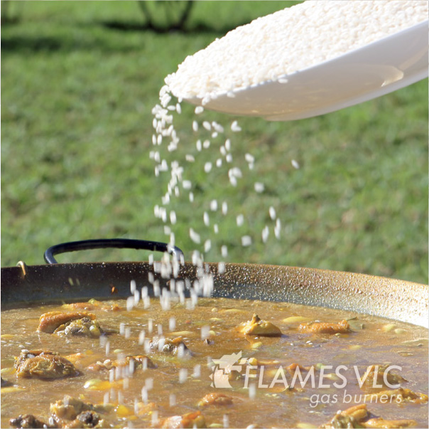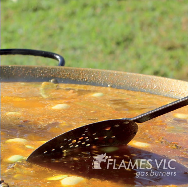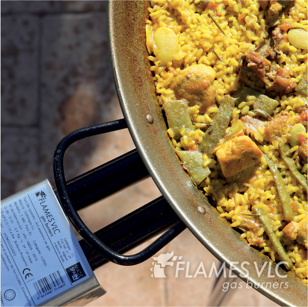 Deja cocer los 3 o 4 últimos minutos a fuego lento y apaga el quemador. Es importante dejar reposar unos minutos antes de degustar. Al preparar paellas, en el momento de cocción del arroz es muy importante que el quemador proporcione suficiente fuego. Eso está garantizado gracias a los potentes quemadores para paella de FLAMES VLC.